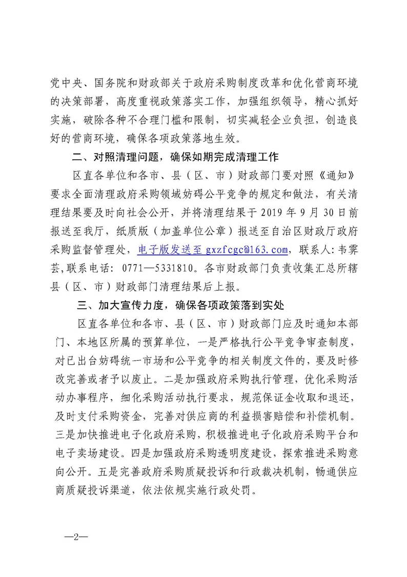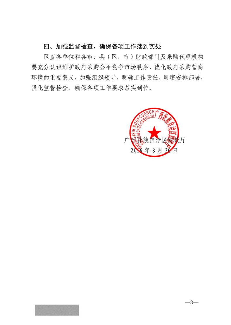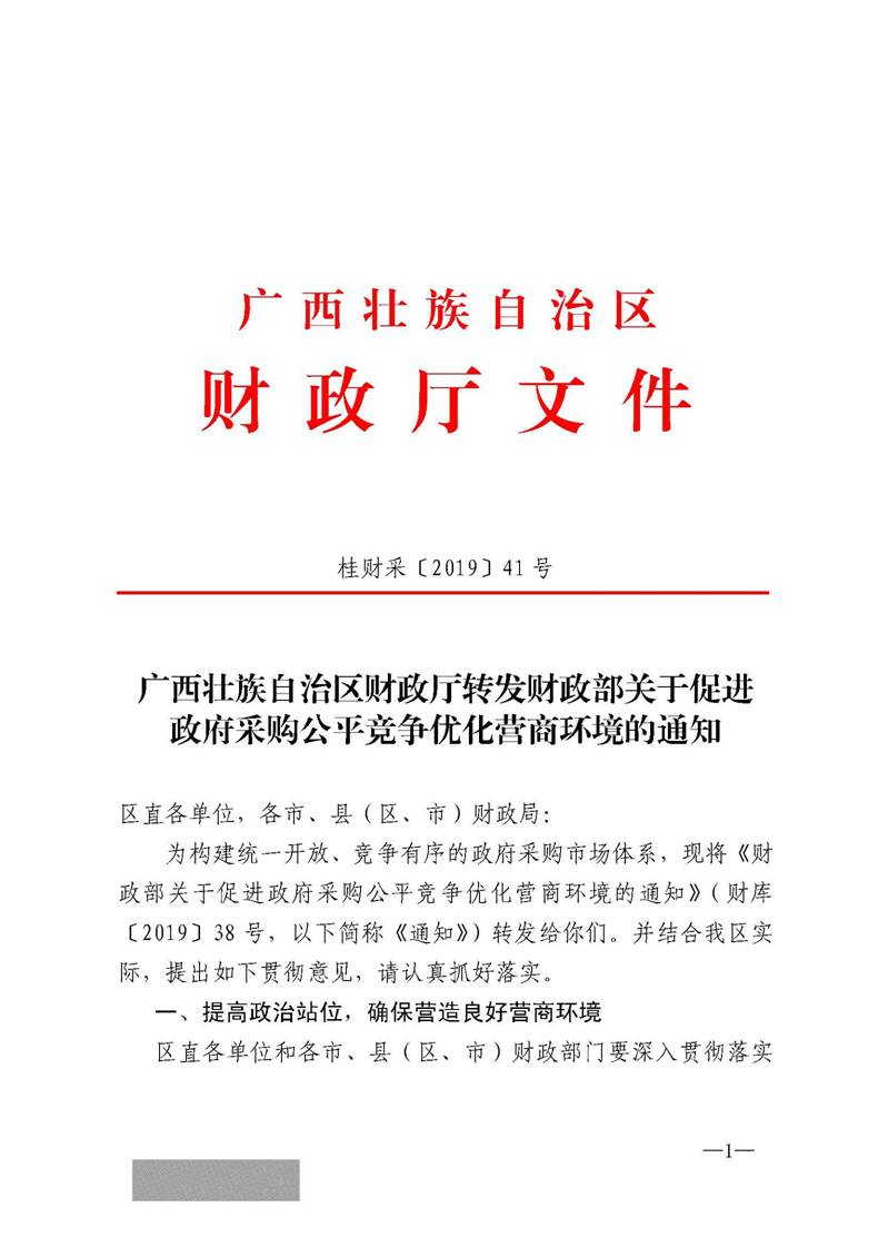广西区财政厅关于促进政府采购公平竞争优化营商环境的通知